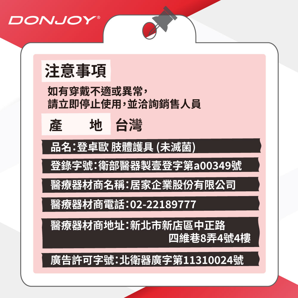 | 醫療器材許可證所載品名: | 登卓歐肢體護具 (未滅菌) |