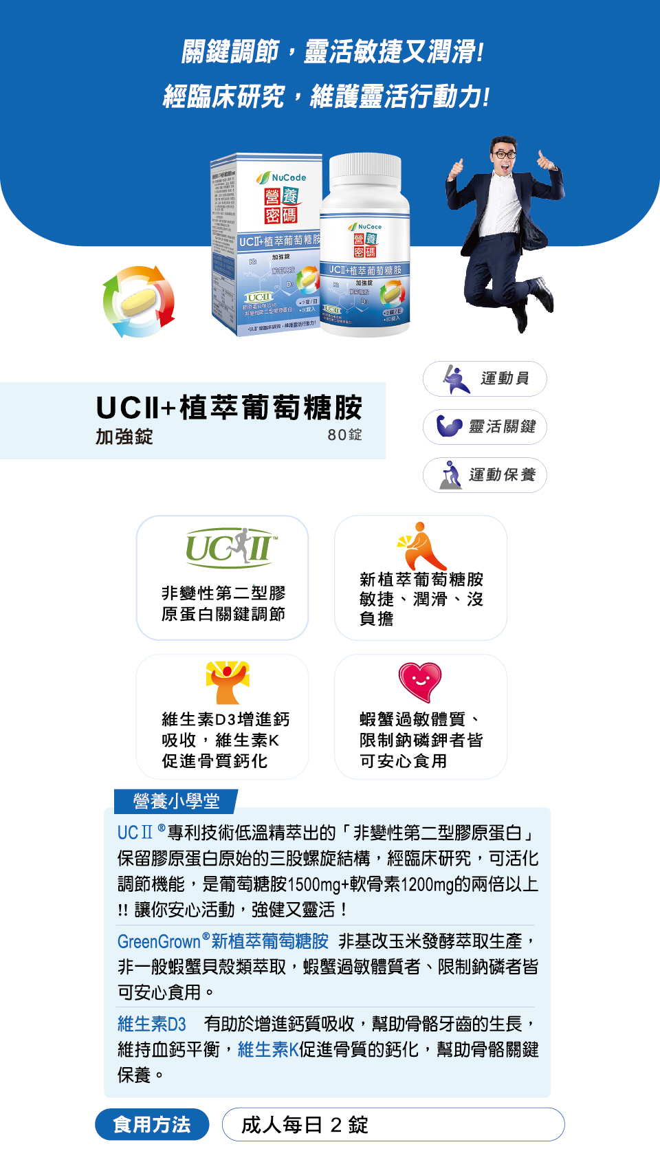 【Nucode】營養密碼UC-II®+植萃葡萄糖胺加強錠80錠/瓶