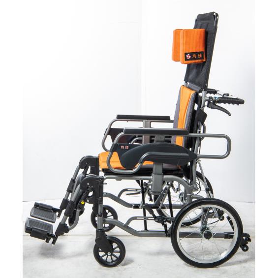 全拆升降扶手、骨科腳坐臥兩用型輪椅。