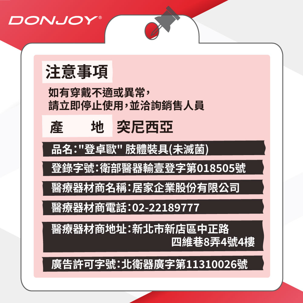 醫療器材許可證所載品名:“登卓歐”肢體裝具(未滅菌)